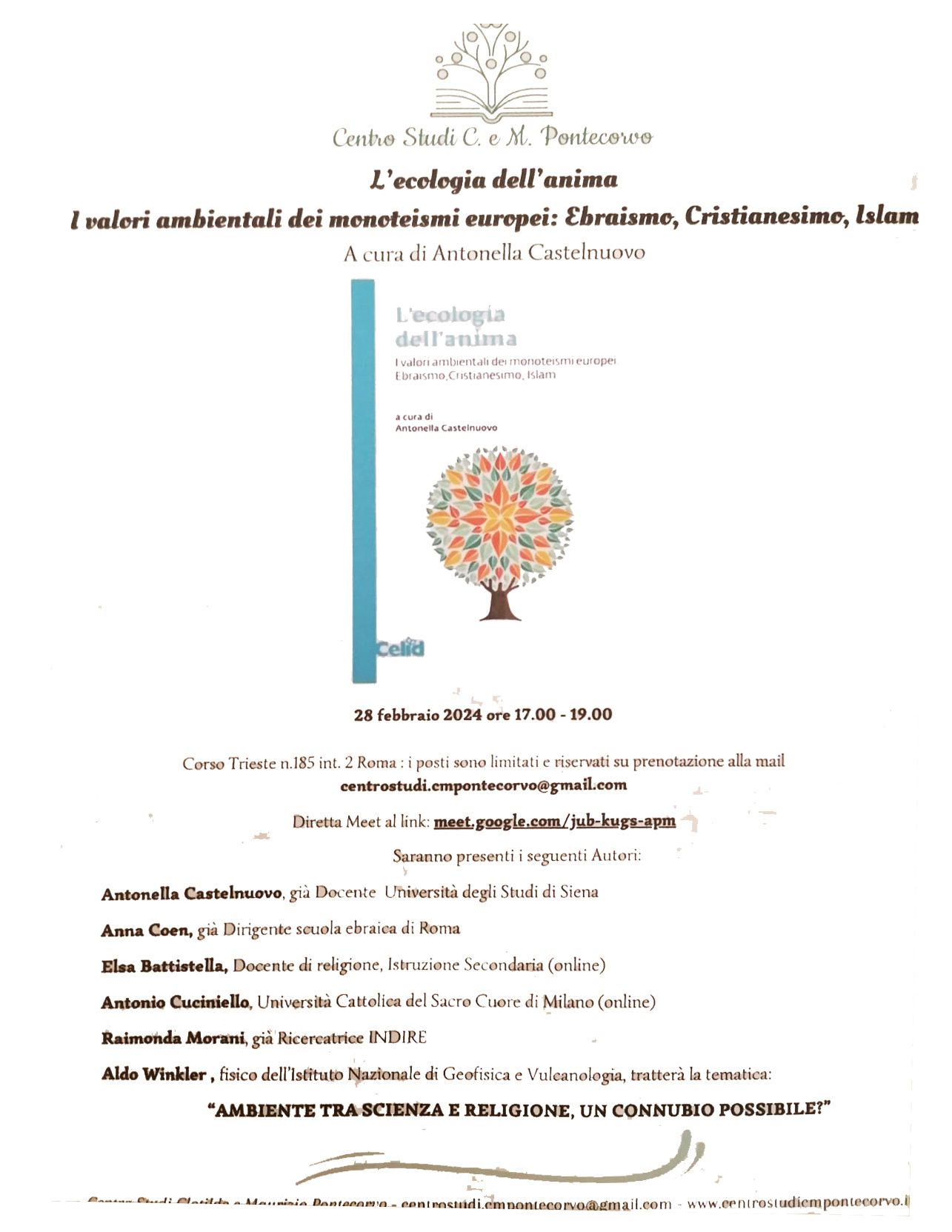 News Associazioni 26 Febbraio 20248 Marzo 2024Redazione Siena, il libro di Antonella Castelnuovo Centro Studi C. e M. PontecorvoL’ecologia dell’anima. I valori ambientali dei monoteismi europei: Ebraismo, Cristianesimo, IslamA cura di Antonella Castelnuovo28 Febbraio 2024 ore 17,00 – 19.00