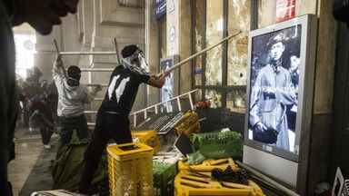 Diteci e dite agli italiani chi si nasconde dietro coloro che inneggiando alla Palestina sfasciano una Stazione, devastano vetrine, imbrattano i monumenti, bloccano treni e strade e colpiscono i poliziotti al grido di “Free Gaza”. Sessanta agenti in ospedale, e solo tre arresti. Segnale debole che incoraggia a ripetere le scene ignobili viste a Milano, ma anche in molte altre città, dove gli insulti alle forze di polizia e le spranghe la facevano da padrone.